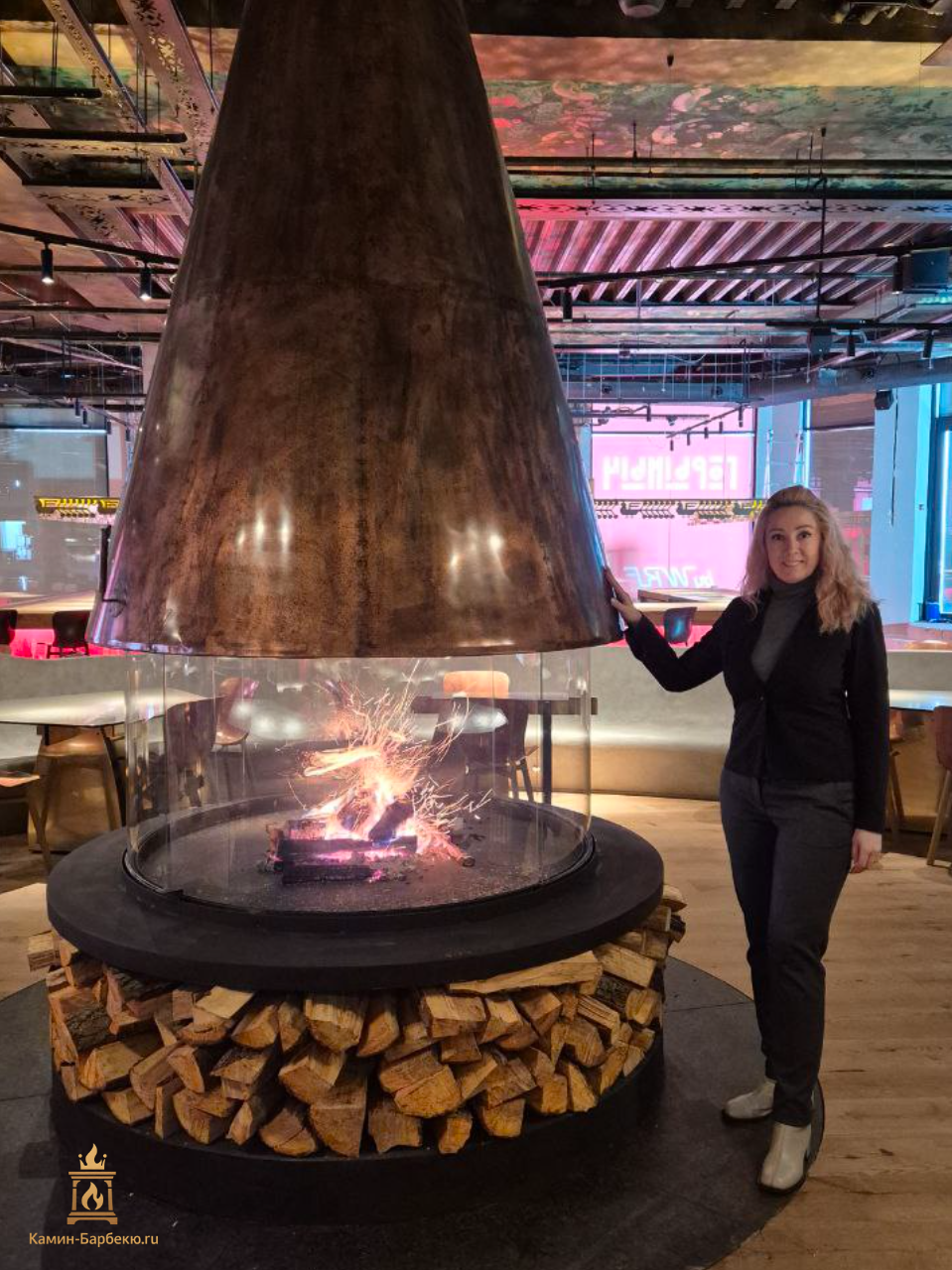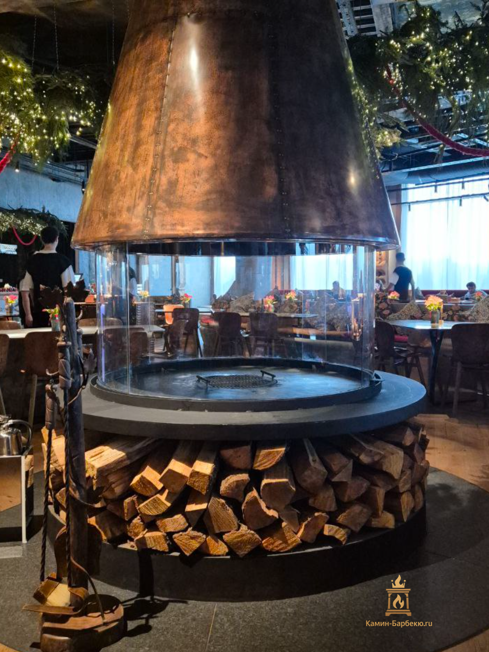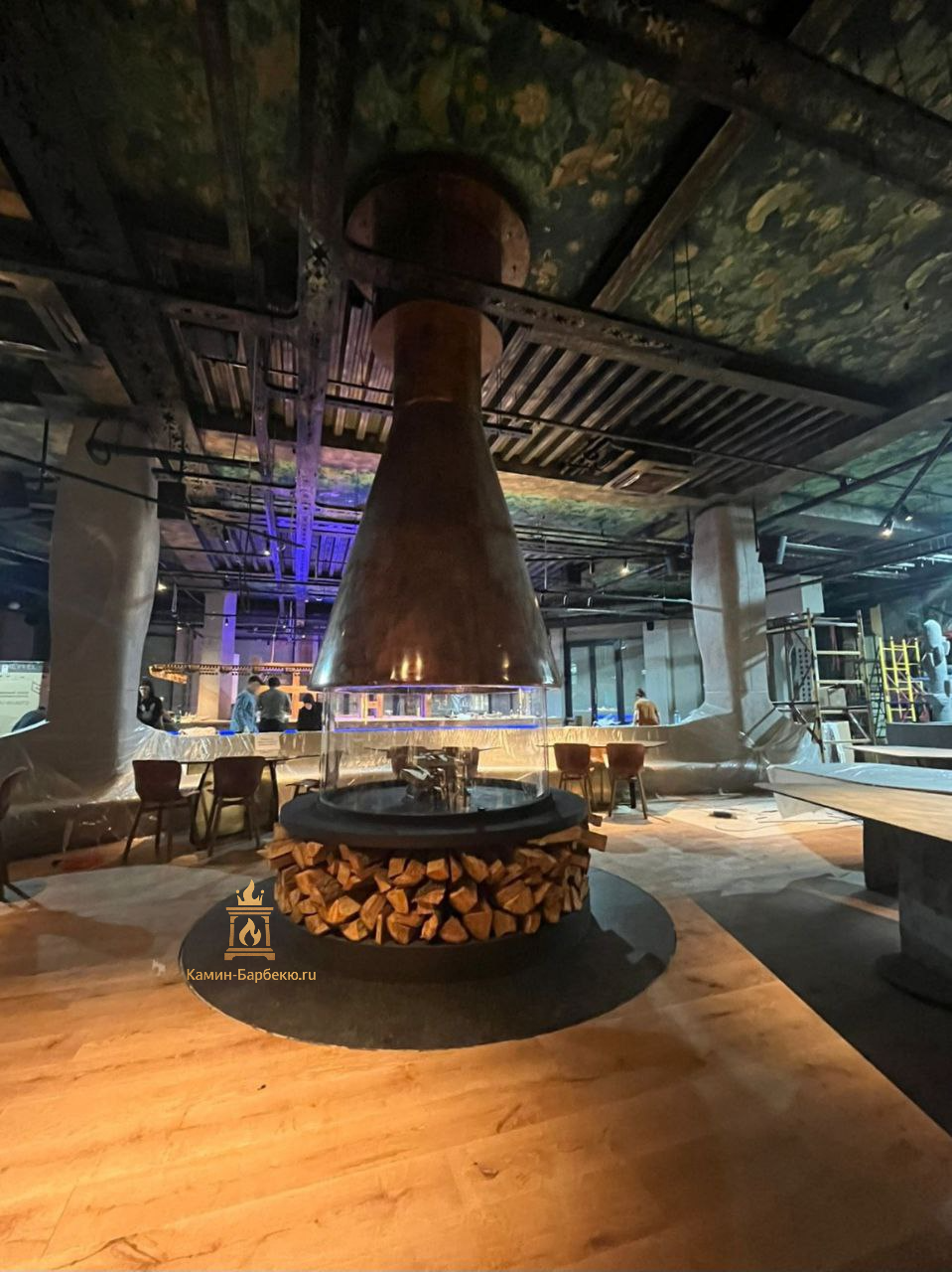 Камин островной из меди для ресторана "Горыныч"