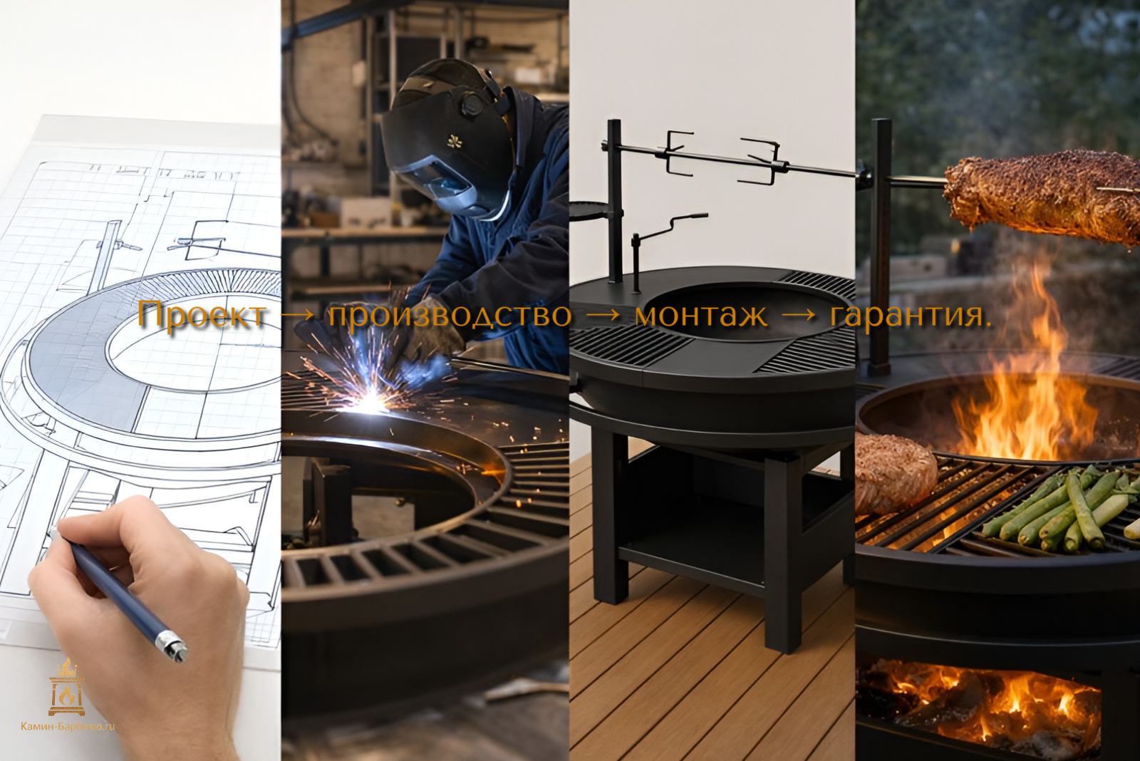 Если вы планируете купить очаг с вертелом для дачи или террасы, мы поможем подобрать размер, рассчитать доставку и согласовать детали проекта. Доставка возможна по Москве, Московской области и всей России транспортными компаниями.
